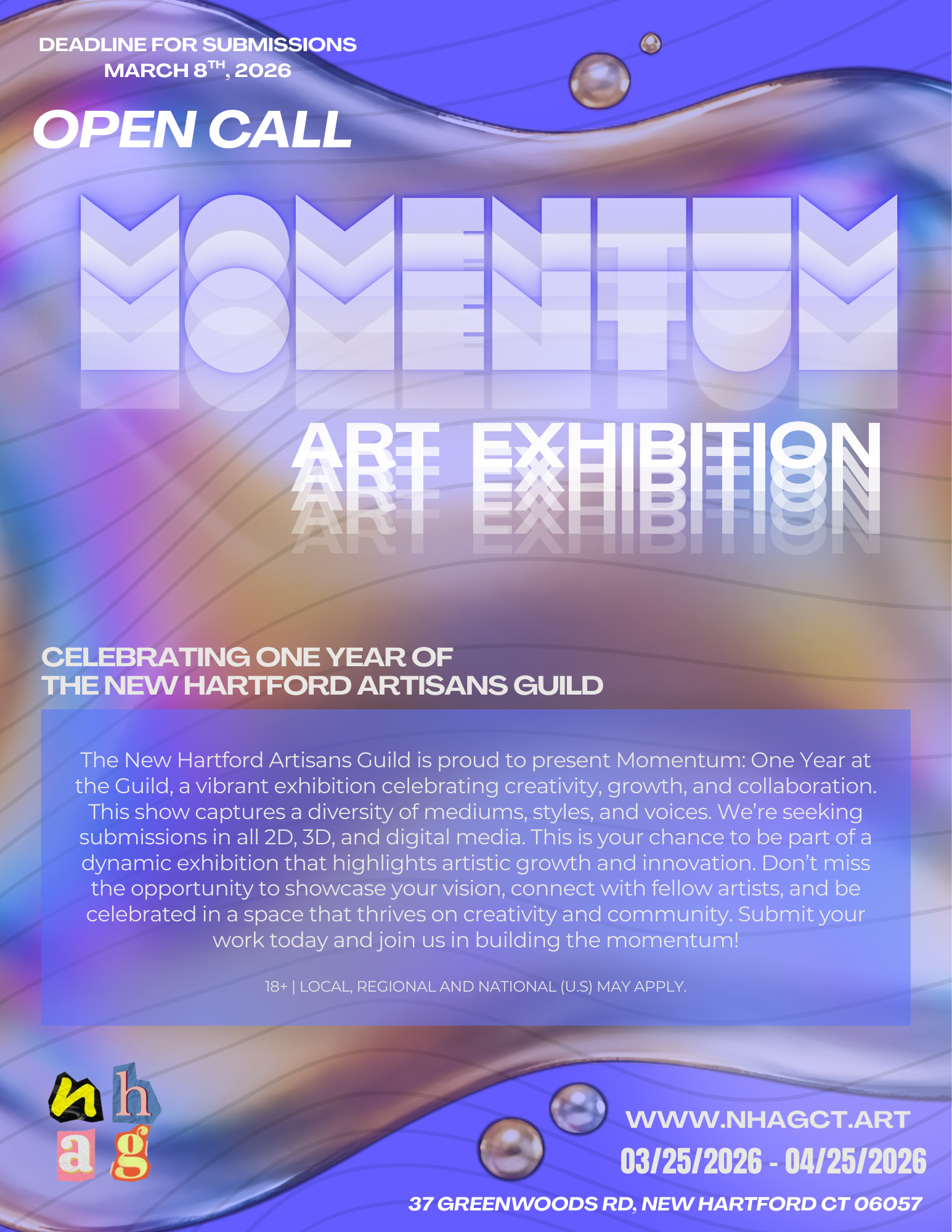 CURRENT EXHIBITIONS View fullsize UPCOMING EXHIBITIONS SUBMISSION FORM SUBMISSION PAYMENT LINK Prospectus for New Hartford Artisans Guild Exhibition Momentum PAST EXHIBITIONS